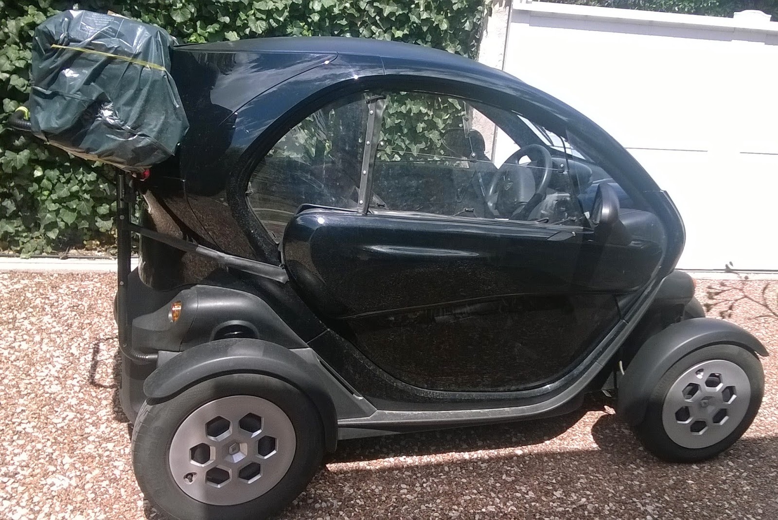 The Renault Twizy, rebadged as a Nissan. Battery-powered electric 2-seater "city" car. Reviews say they are quite fun to drive, zipping around town.