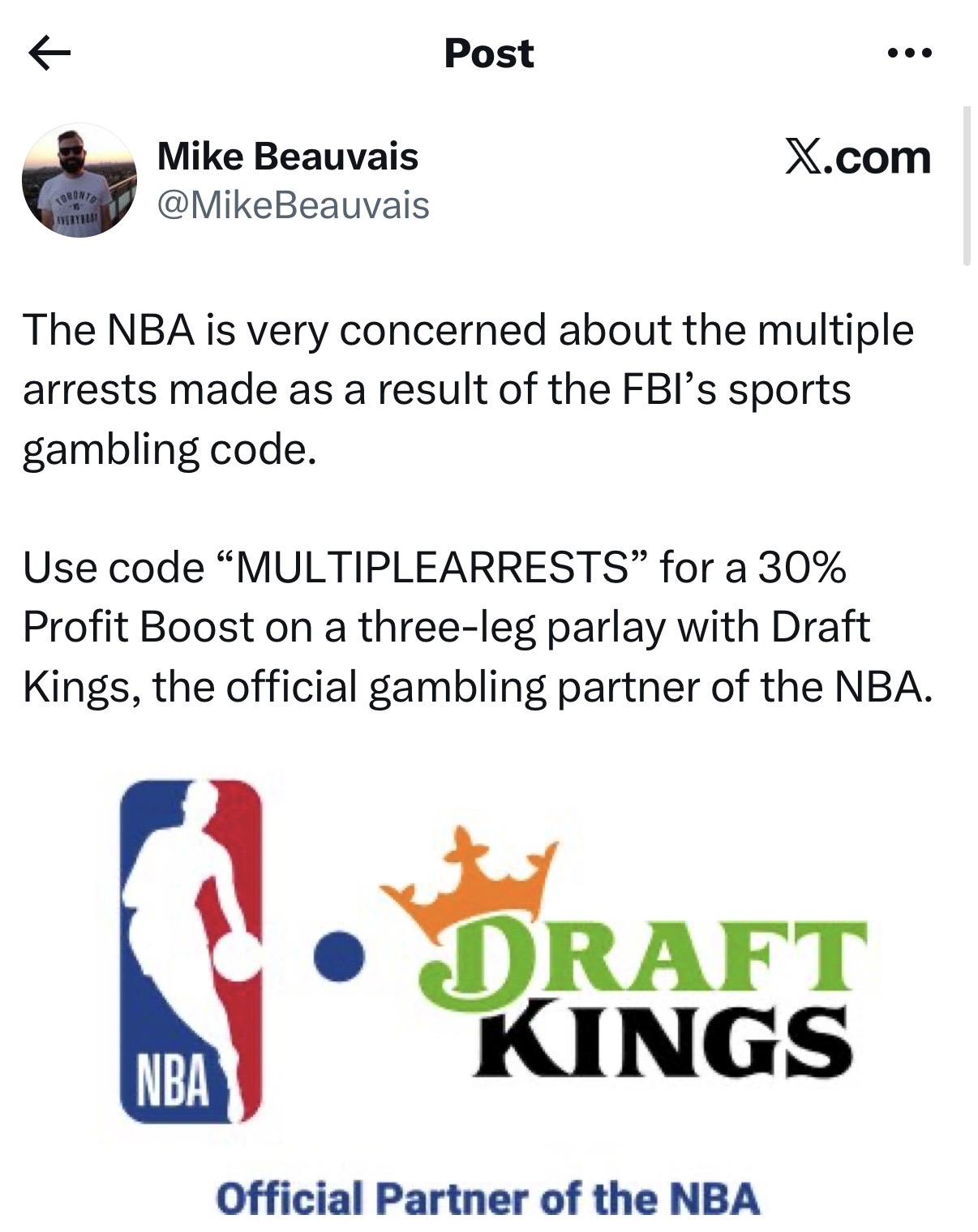 I could see that. Imagine how much of this goes on in college FB and BB, where most aren’t making big $ off NIL, and there are thousands of players to keep track of.
