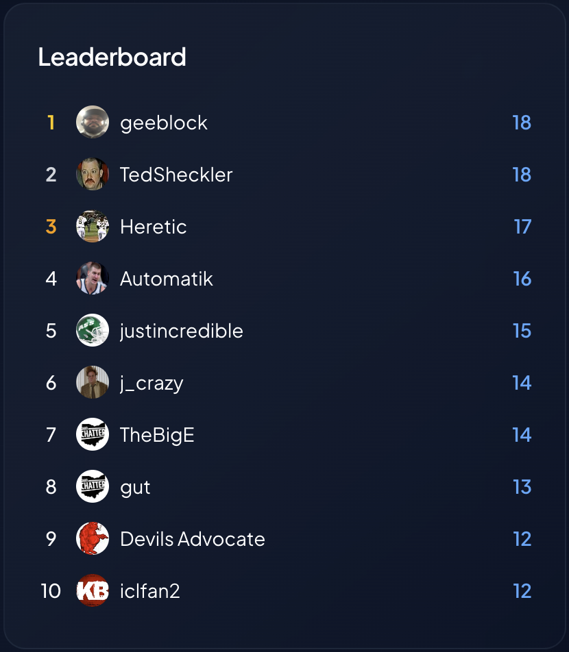 Top 10 going in to the final game of this round.
