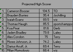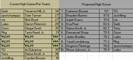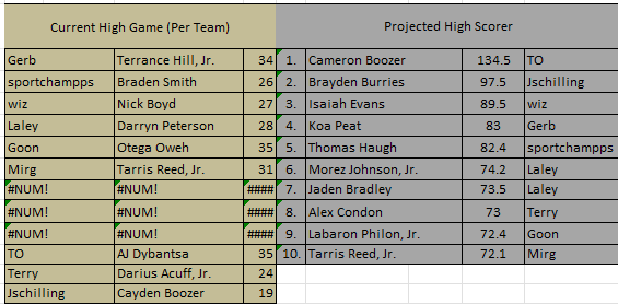 Instead...I drafted Nate Ament who averages 17.5ppg and got 0 in round 1. And Solo Ball who's shot is SO BAD right now, he got benched in a close game last night (13.5ppg) and scored 0. And Wes Ennis who averages 16.8 for South Florida tried to scissor lock a player and got a flagrant and benched for like 17 minutes. Got a big ole 4 points LOL.