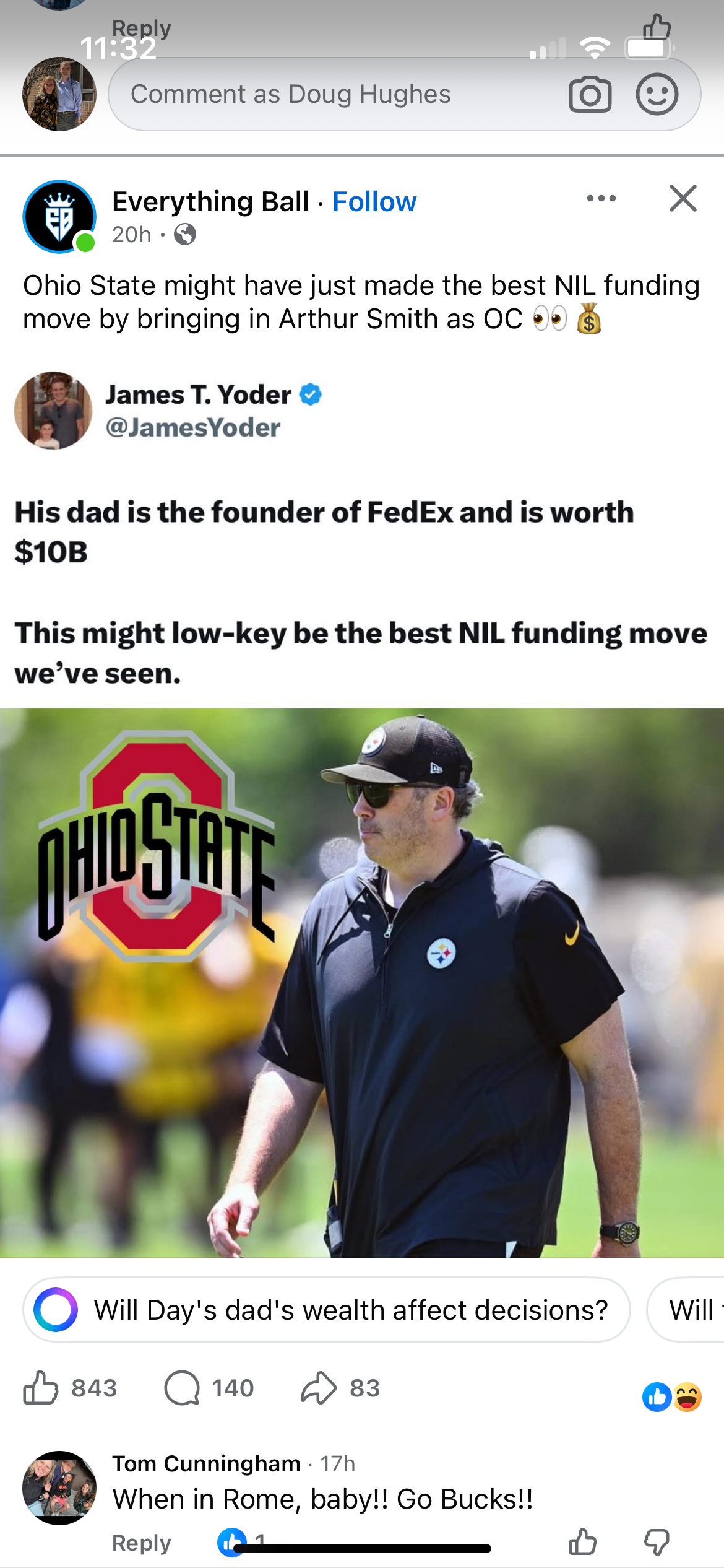 Well, that does make sense! Me, I'm just hoping that this hire is like Patricia, where a pro coach who's fallen on hard times gets revitalized because he's now coaching a bunch of 4-5 stars with NFL potential and he winds up looking way better than he did at his last NFL stop.