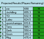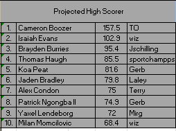 These are all off. Realized I was counting DUKE for 7 games, as I had typed them into the champion portion of the bracket. Which added them being counted a 7th time. So anyone with a Duke player, take their PPG average off of the projected results 1x and you will have the right number. Will be updated after the afternoon games anyway.