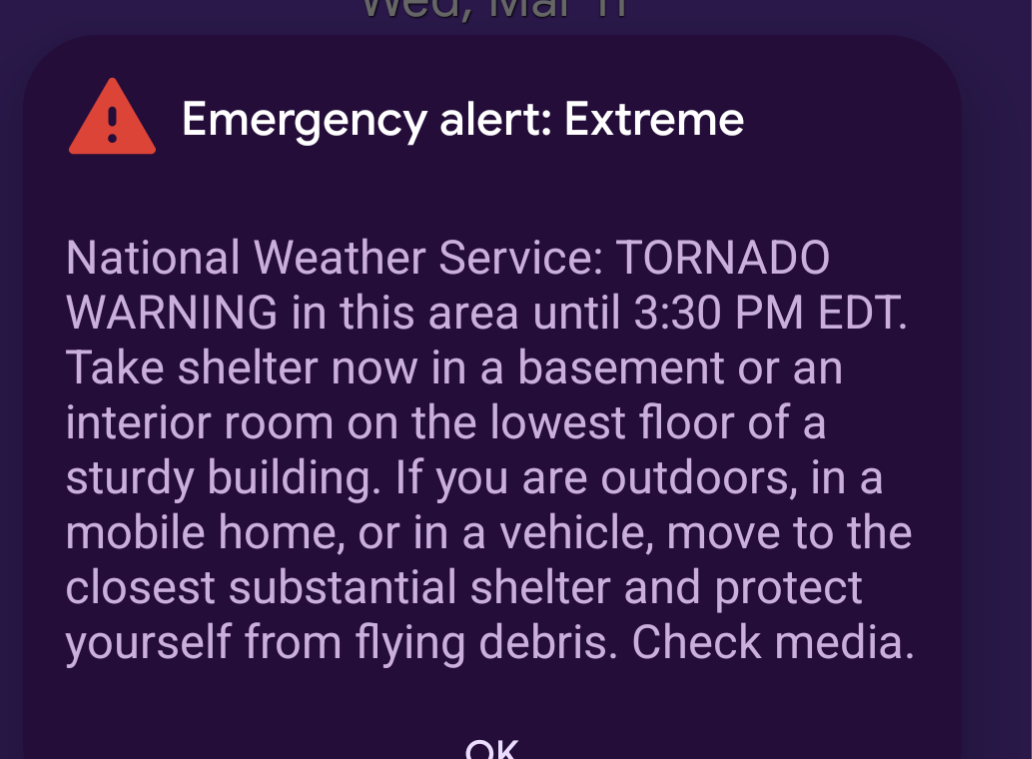 This is like the fourth tornado warning alert I've gotten today.